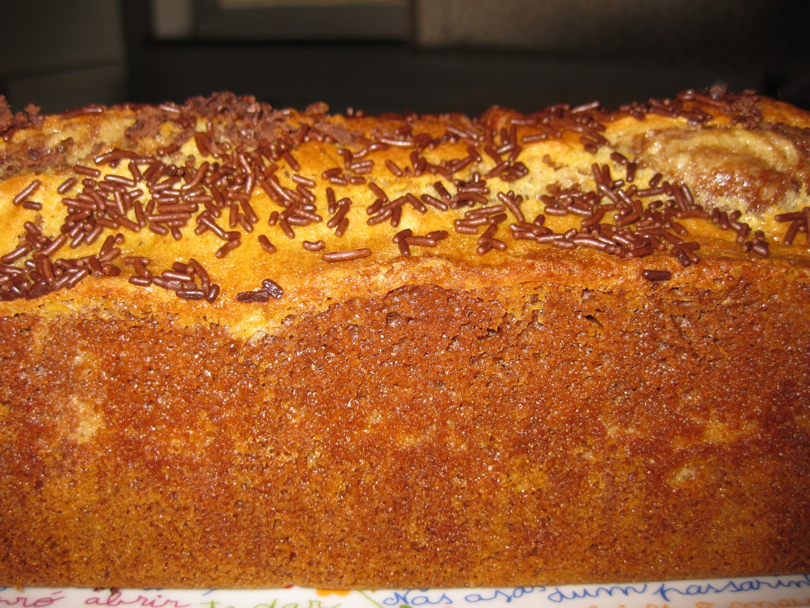 Polvilhe com açúcar amarelo (eu polvilhei com açúcar mascavado) e leve a cozer a 180º durante cerca de 30 a 40m.